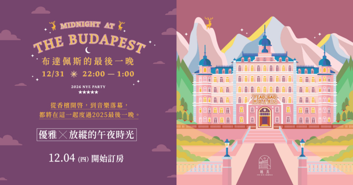 眺高 STAY WITH MOUNTAIN 2026NYE 跨年派對 × 布達佩斯山中大飯店『午夜之前,山霧會替我們點亮一座飯店。』尊敬的旅人,您好:今年的跨年夜,眺高將化身一座隱身在布達佩斯山色中的復古大飯店。🌙我們將引領所有賓客走進一段介於優雅與放縱之間的午夜時光。絲絨色的燈影